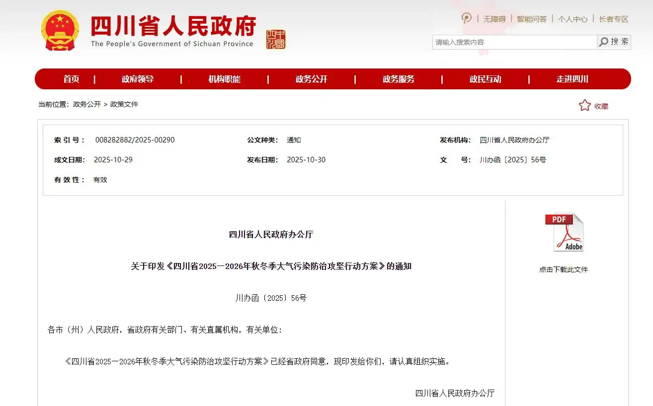 重點聚焦四大領域 四川發(fā)布秋冬季大氣污染防治攻堅行動據(jù)四川省人民政府網(wǎng)站消息,為全力打好秋冬季大氣污染防治攻堅戰(zhàn),高質(zhì)量完成大氣“十四五”收官目標任務,實現(xiàn)“十五五”順利開局,10月..[详情]